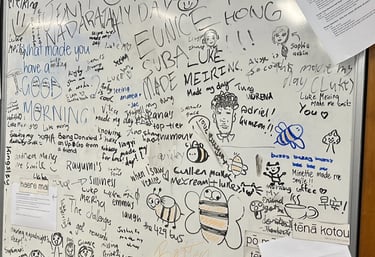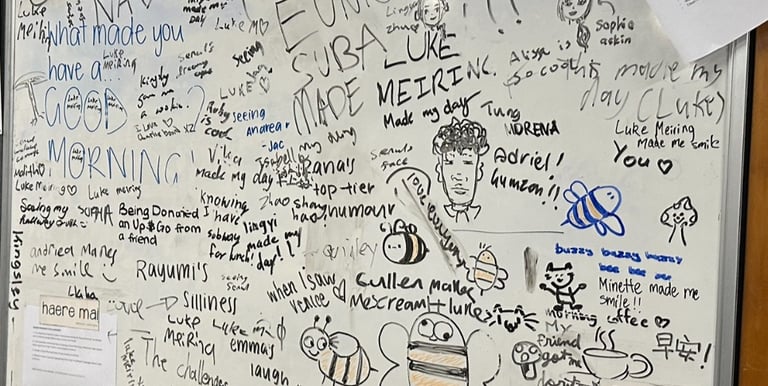 A whiteboard where there is prompts that evokes student's mindfulness thinking, and to write down answers to the prompt.
